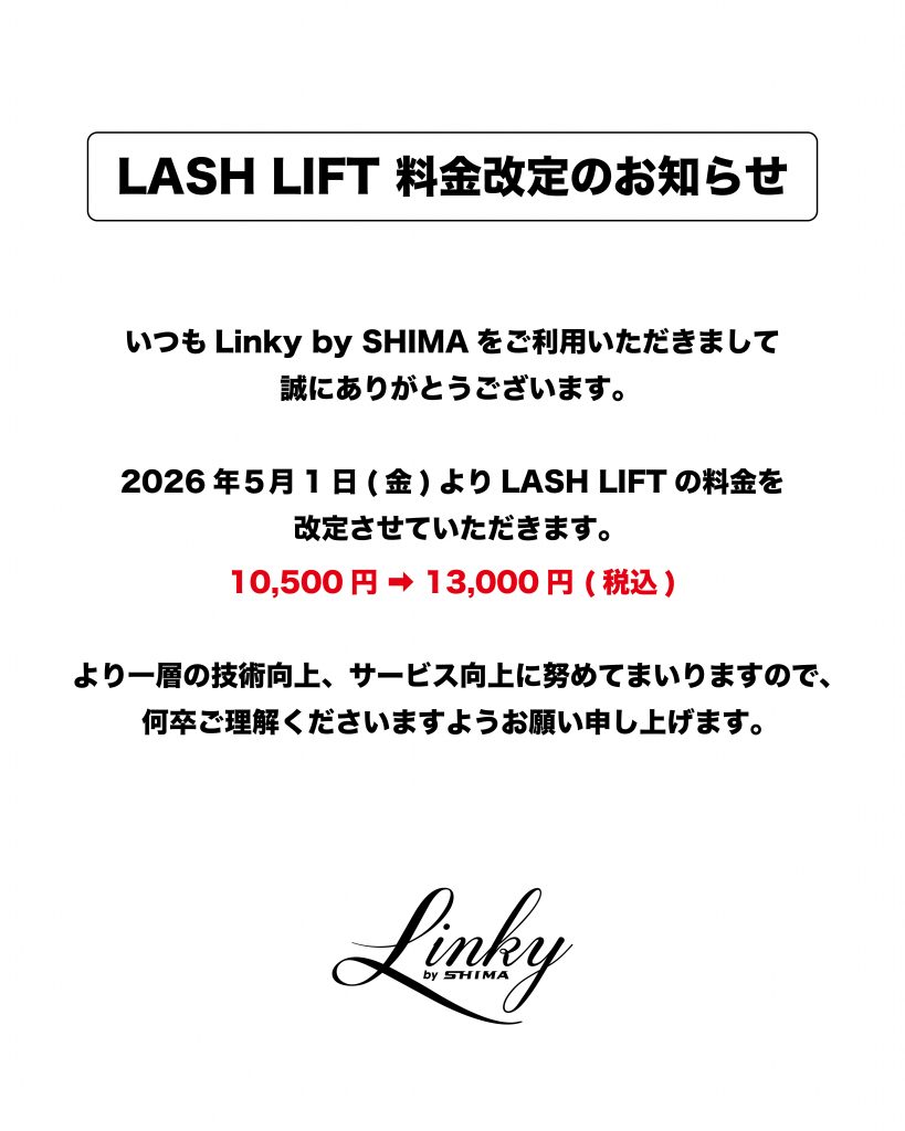 LASH LIFT 料金改定のお知らせ
